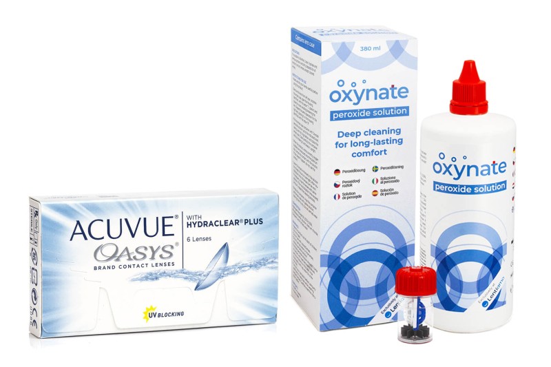 Acuvue Oasys (6 lęšiai) + Oxynate Peroxide 380 ml su lęšių dėklu
