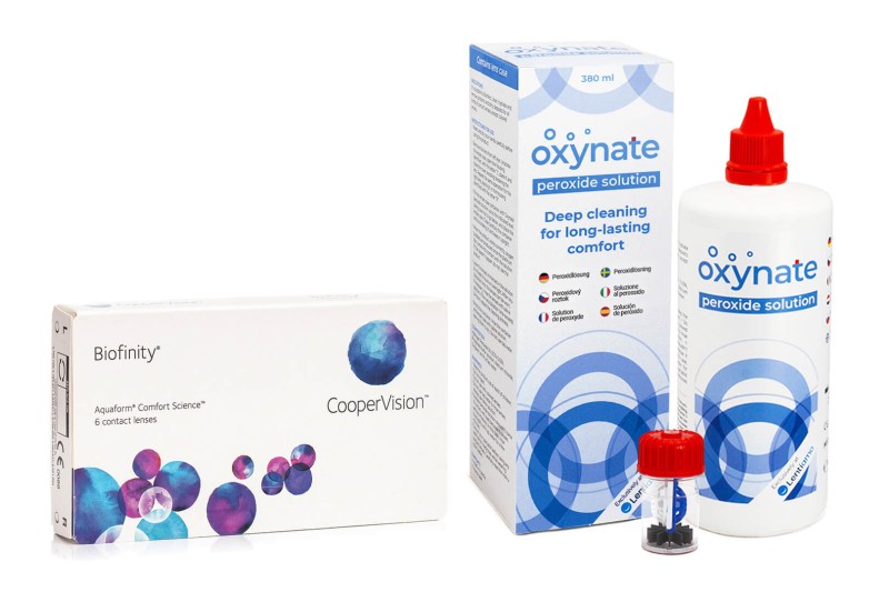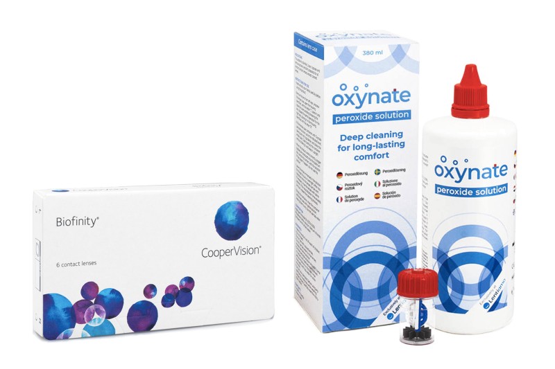 Biofinity CooperVision (6 lęšiai) + Oxynate Peroxide 380 ml su lęšių dėklu