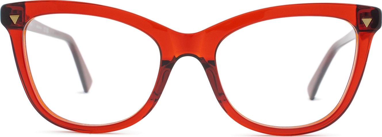 - Raudona rėmelio spalva puikiai tinka šiltam odos atspalviui ir juodiems, tamsiai rudiems, baltiems arba pilkiems plaukams.