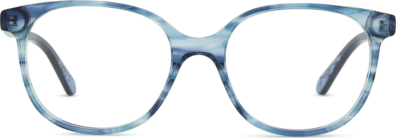 Mėlyna rėmelio spalva puikiai tinka šaltam odos atspalviui ir šviesiai rudiems, juodiems arba šviesiai blondiniams plaukams.