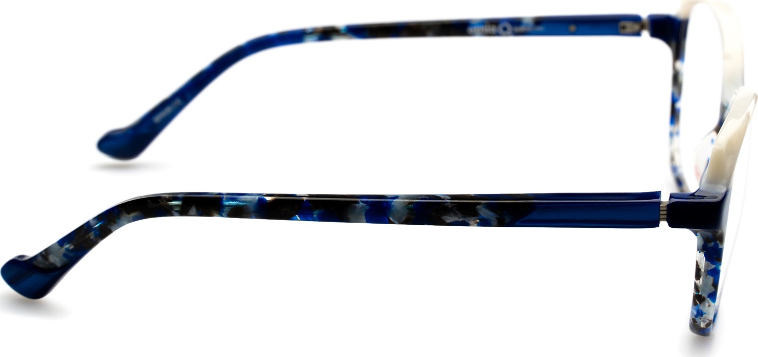 - Mėlyna rėmelio spalva puikiai tinka šaltam odos atspalviui ir šviesiai rudiems, juodiems arba šviesiai blondiniams plaukams.