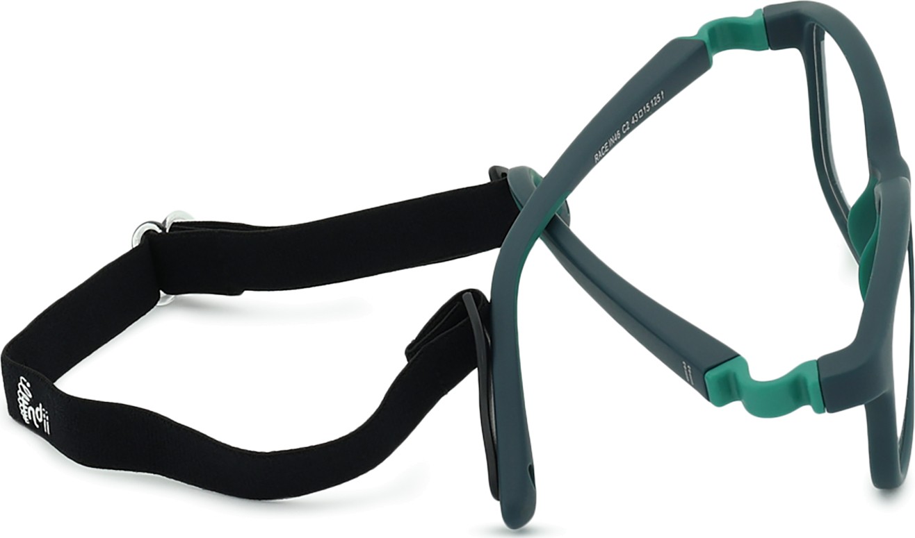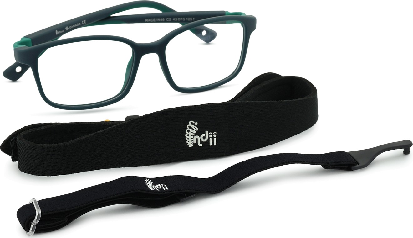„Indii Kids IN“ turi du reguliuojamus tekstilinius dirželius, kurie sumažina akinių pametimo riziką ir užtikrina geresnį prigludimą prie galvos įvairių vaikų užsiėmimų metu.