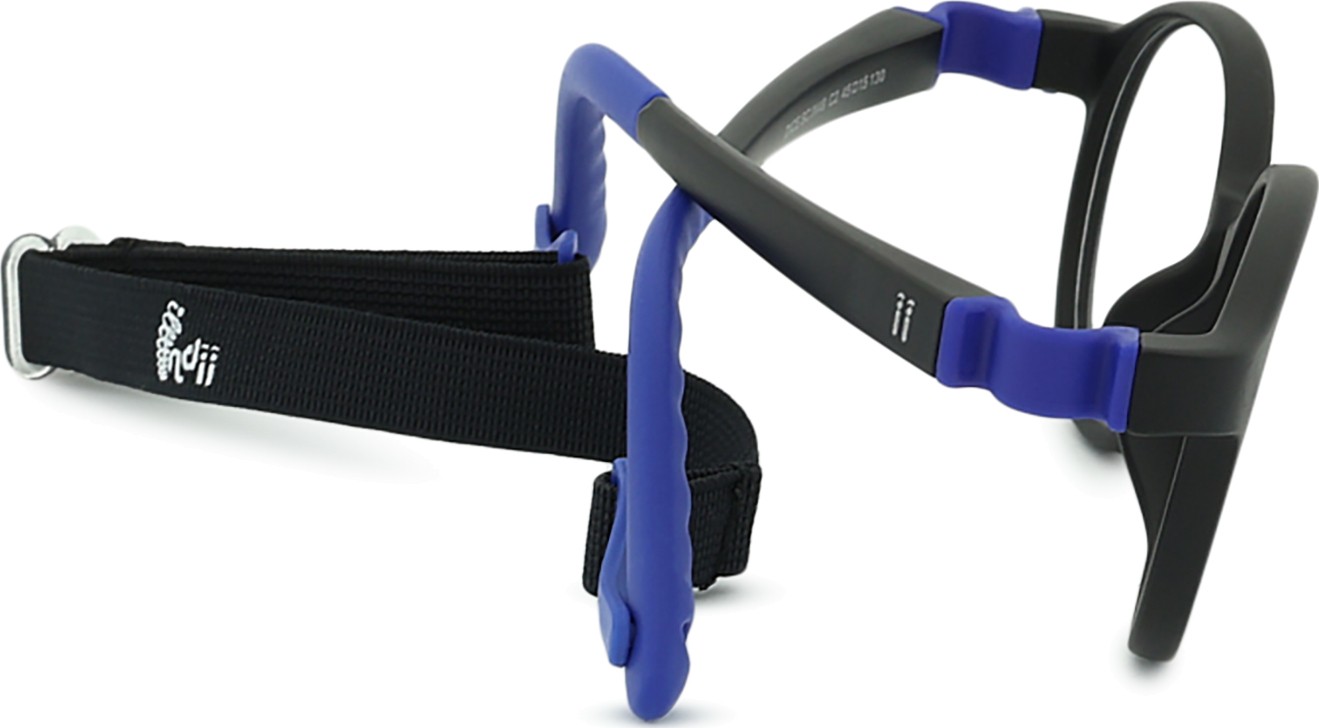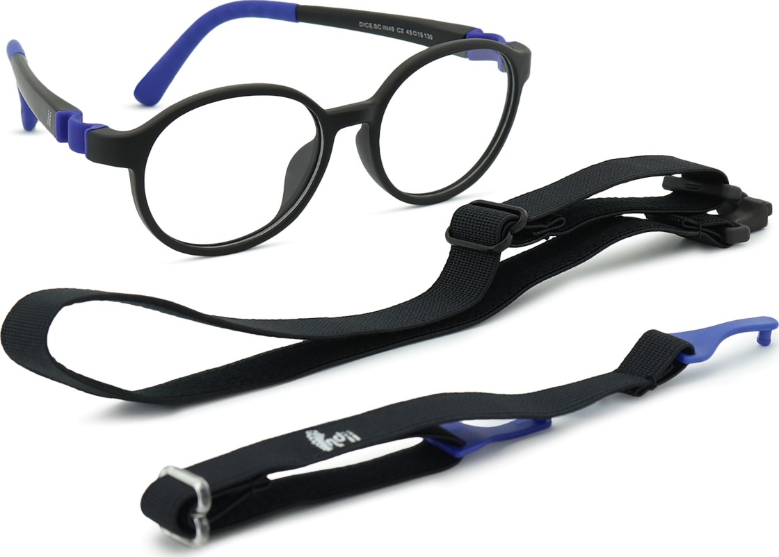 „Indii Kids IN“ turi du reguliuojamus tekstilinius dirželius, kurie sumažina akinių pametimo riziką ir užtikrina geresnį prigludimą prie galvos įvairių vaikų užsiėmimų metu.