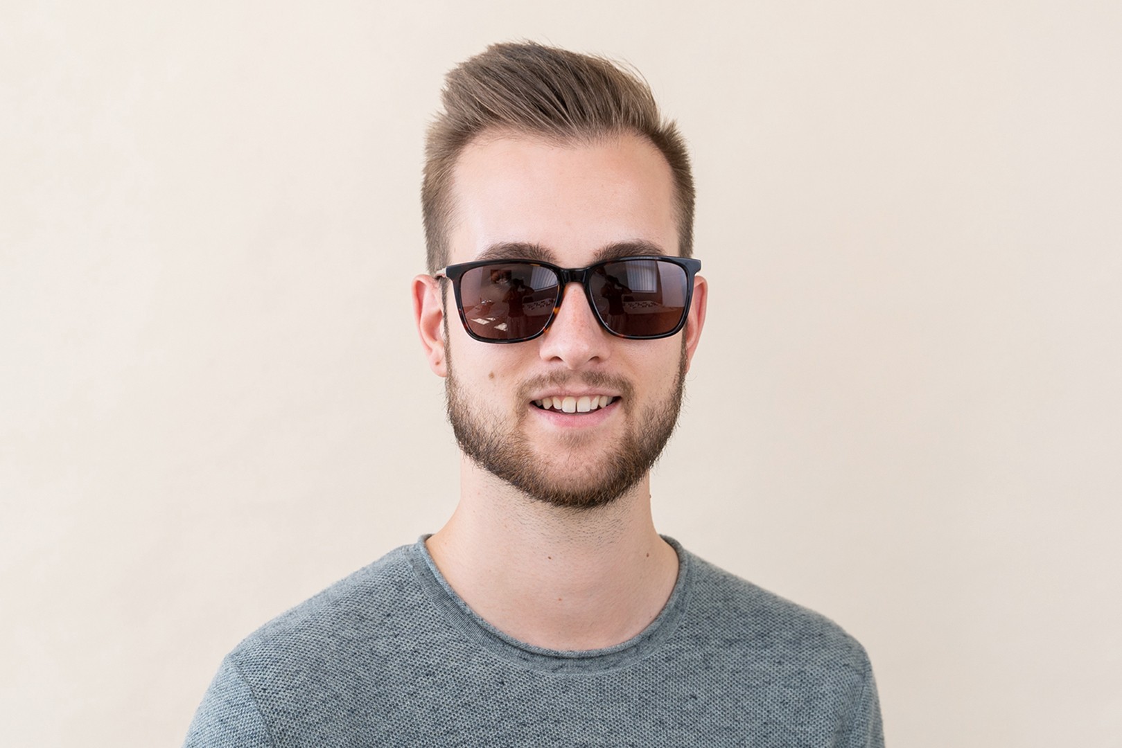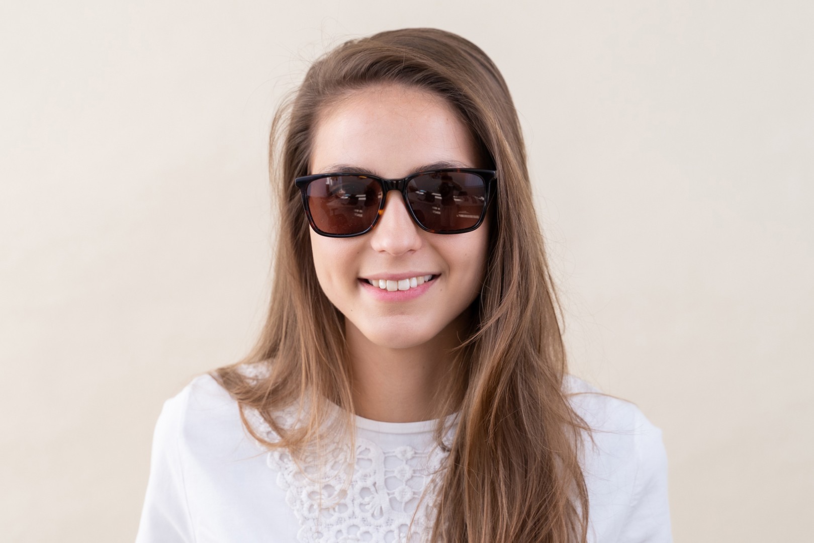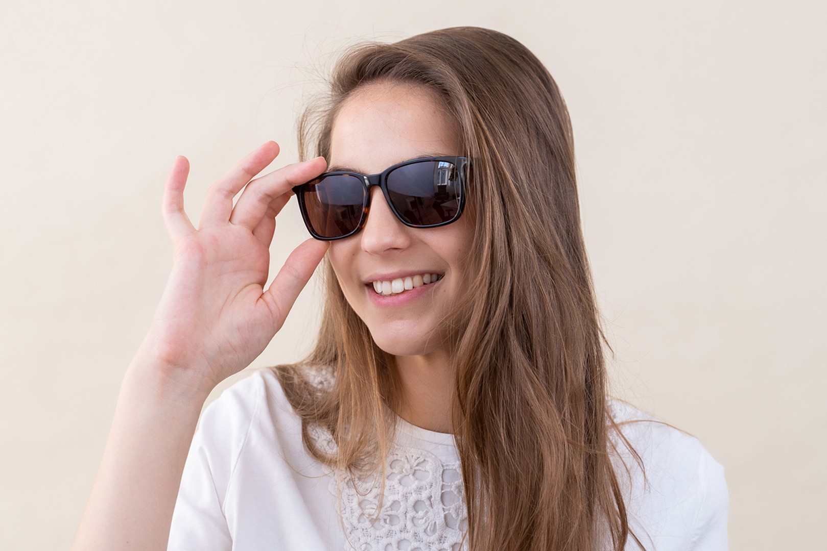 Patikrinkite, kaip atrodote su šiais akiniais nuo saulės, naudodami Lentiamo virtualaus matavimosi funkciją.