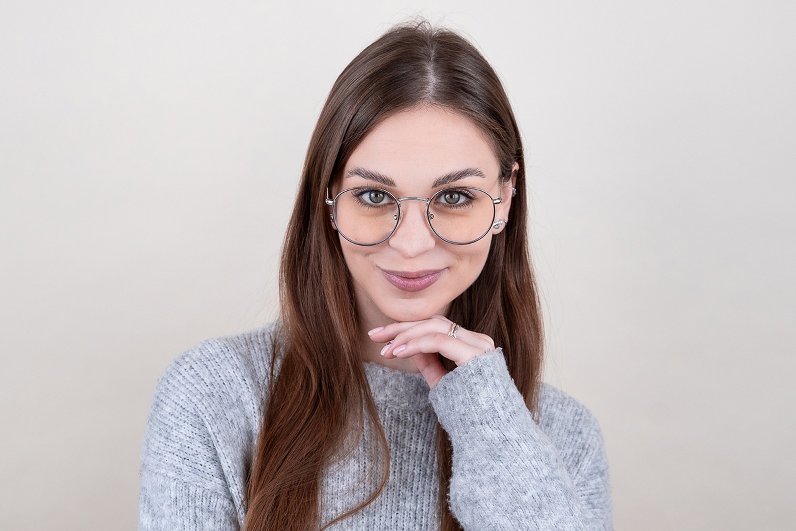 - Sidabrinė rėmelių spalva puikiai tinka šaltam odos atspalviui ir raudoniems, pilkiems, baltiems ar tamsiai blondiniškiems plaukams.