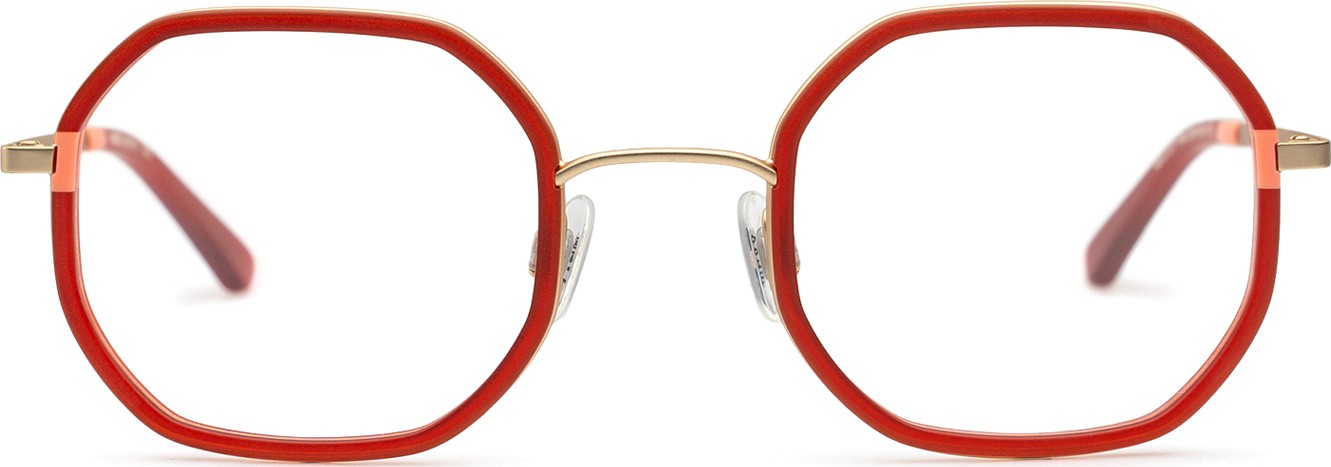 - Raudona rėmelio spalva puikiai tinka šiltam odos atspalviui ir juodiems, tamsiai rudiems, baltiems arba pilkiems plaukams.