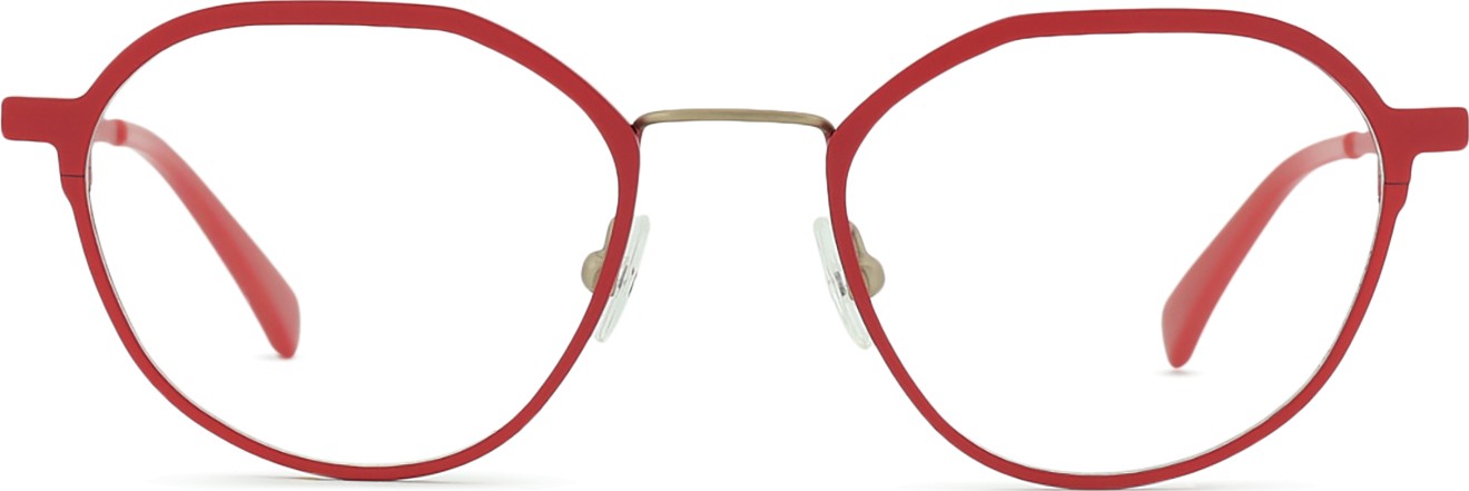 - Raudona rėmelio spalva puikiai tinka šiltam odos atspalviui ir juodiems, tamsiai rudiems, baltiems arba pilkiems plaukams.