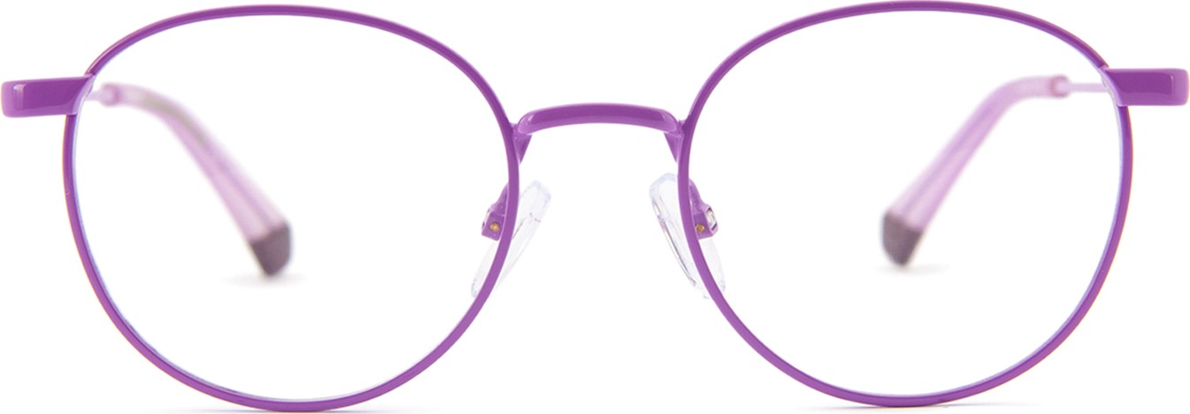 - Violetinė rėmelio spalva puikiai tinka šaltam odos atspalviui ir juodiems, pilkiems, baltiems arba šviesiai blondiniams plaukams.