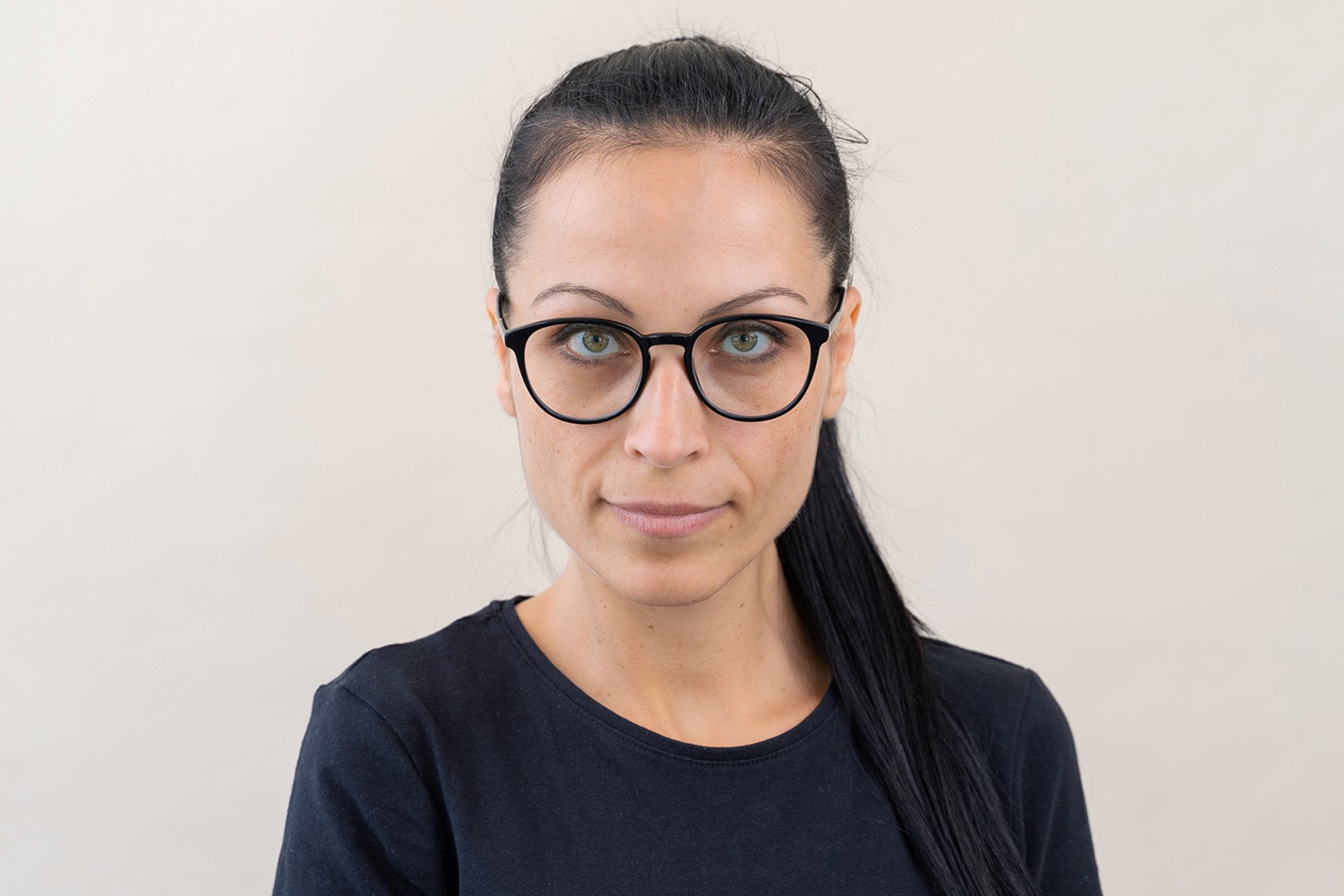 - Juoda rėmelio spalva puikiai tinka šaltam odos atspalviui ir šviesiai blondiniams, šviesiai rudiems arba juodiems plaukams.