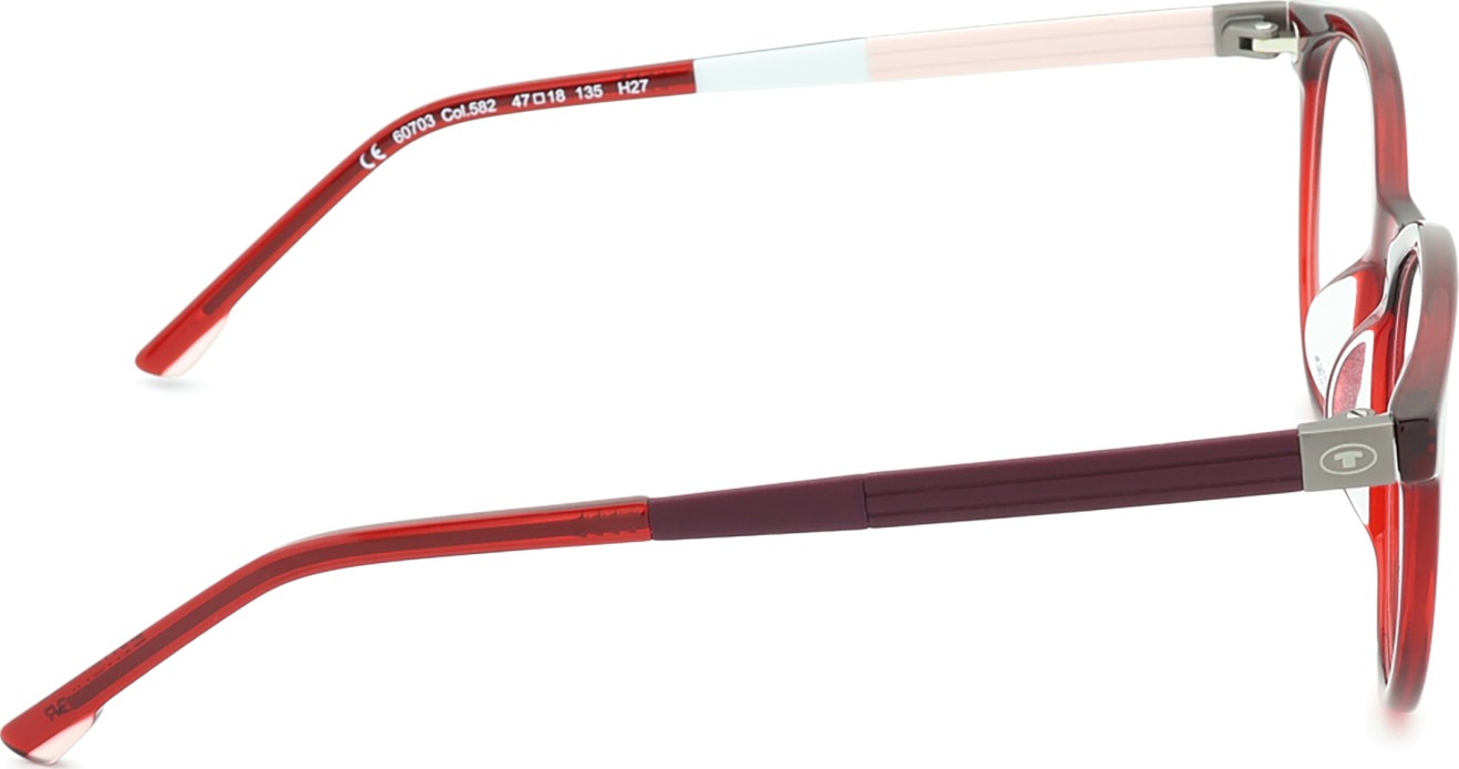 Raudona rėmelio spalva puikiai tinka šiltam odos atspalviui ir juodiems, tamsiai rudiems, baltiems arba pilkiems plaukams.