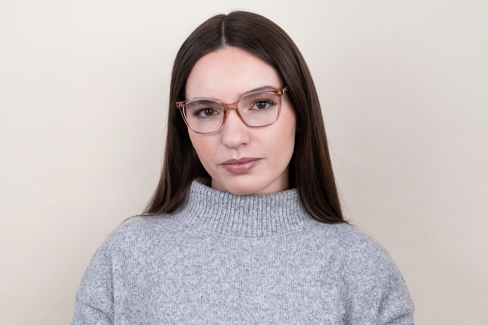 Rožinė rėmelio spalva puikiai tinka šaltam odos atspalviui ir šviesiai rudiems arba šviesiai blondiniams plaukams.